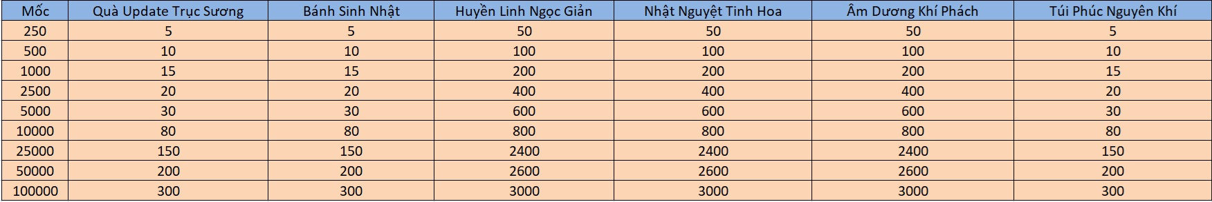 Trong thời gian diễn ra sự kiện khi tiên nhân nạp tích lũy đủ mốc sẽ nhận gói quà ĐẶC BIỆT tương ứng