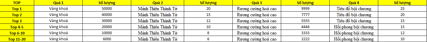 Đối với top 1 sẽ nhận được 1 danh hiệu tự chọn