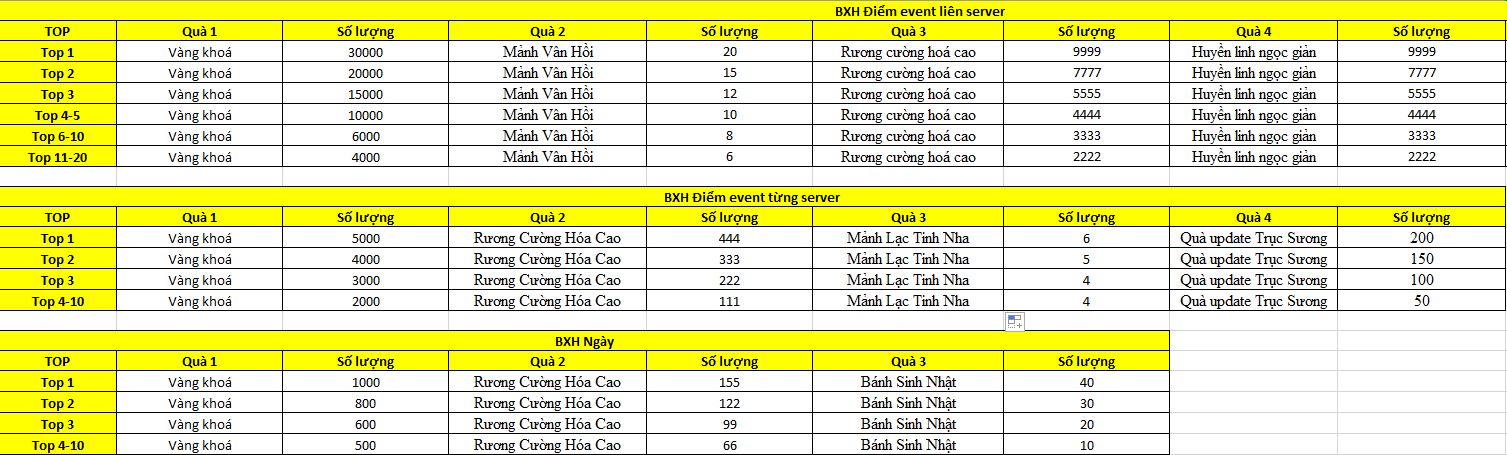 – Điểm BXH được tính khi người chơi đổi Điểm trong Cửa Hàng Điểm Event (Không tính đổi Điểm Phúc Lợi)