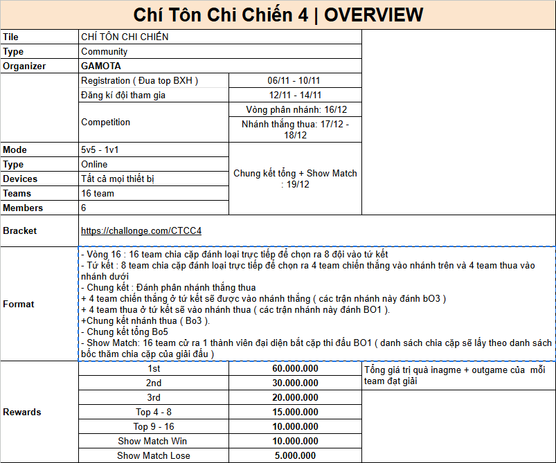 - Lịch thi đấu và thể thức thi đấu sẽ được thông báo chi tiết trên fanpage của game tại địa chỉ: