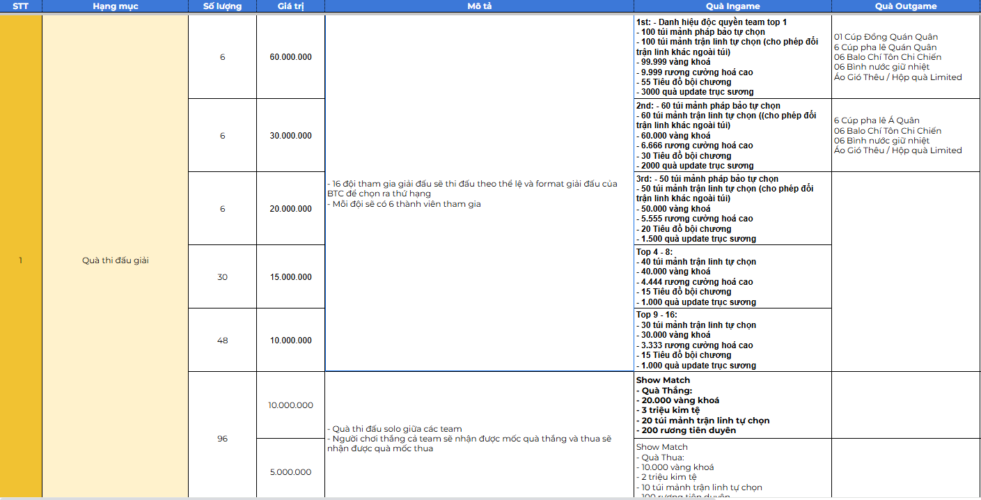 - Nếu bỏ quyền trận đấu nào thì quà của cả giải đấu sẽ không được phát.